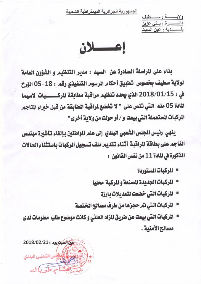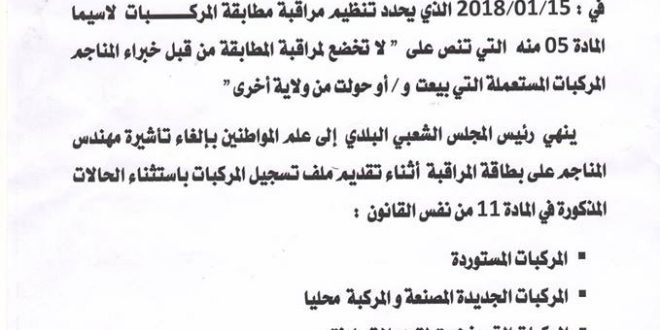 #اعلان ف/ي إلغاء تأشيرة مهندس المناجم على بطاقة المراقبة أثناء تقديم ملف تسجيل المركبات الأربعاء 5 جمادى الآخرة 1439هـ 21-2-2018م إعلانات شاركها Facebook Twitter Google + Stumbleupon LinkedIn