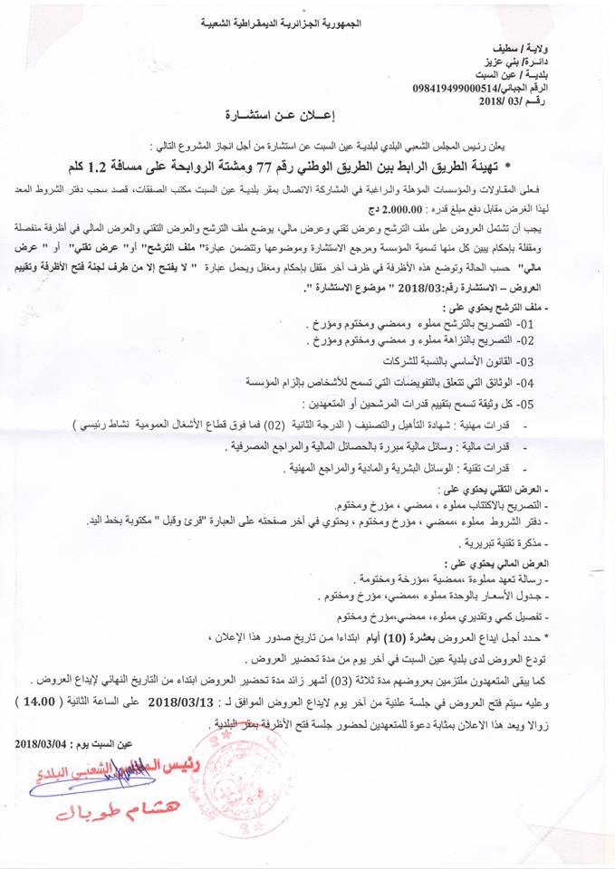 إعلانات عن استشارات مشاريع مخططات البلدية للتنمية ” PCD 2018 “ الأحد 16 جمادى الآخرة 1439هـ 4-3-2018م إعلانات, مناقصات و استشارات شاركها Facebook Twitter Google + Stumbleupon LinkedIn