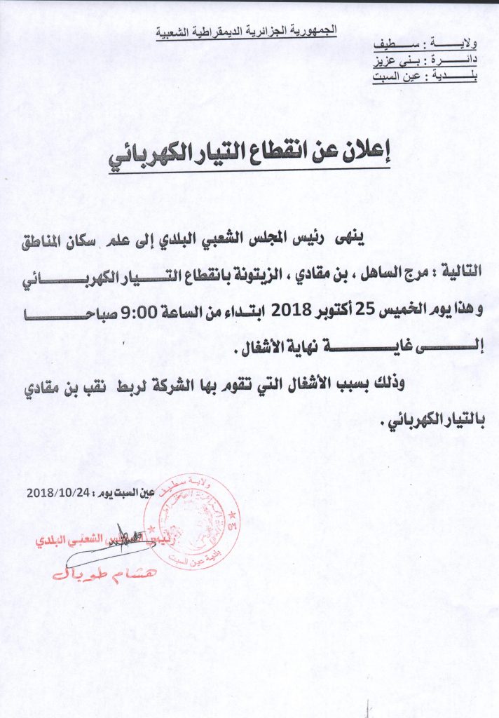 إعلان عن انقطاع التيار الكهربائي
