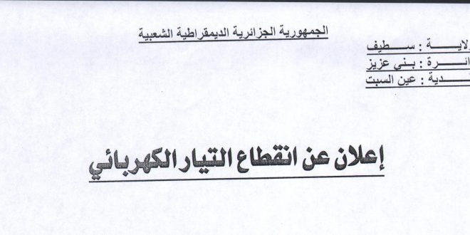 بب   ((( توضيح فقط : حسب اعلان مصالح مديرية التوزيع وكالة عين الكبيرة ، …