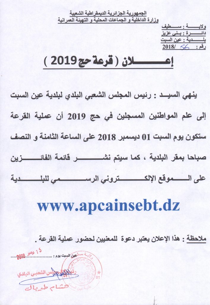 إعلان قرعة حج 2019 الأربعاء 13 ربيع الأول 1440هـ 21-11-2018م إعلانات, إعلانات مختلفة شاركها Facebook Twitter Google + Stumbleupon LinkedIn