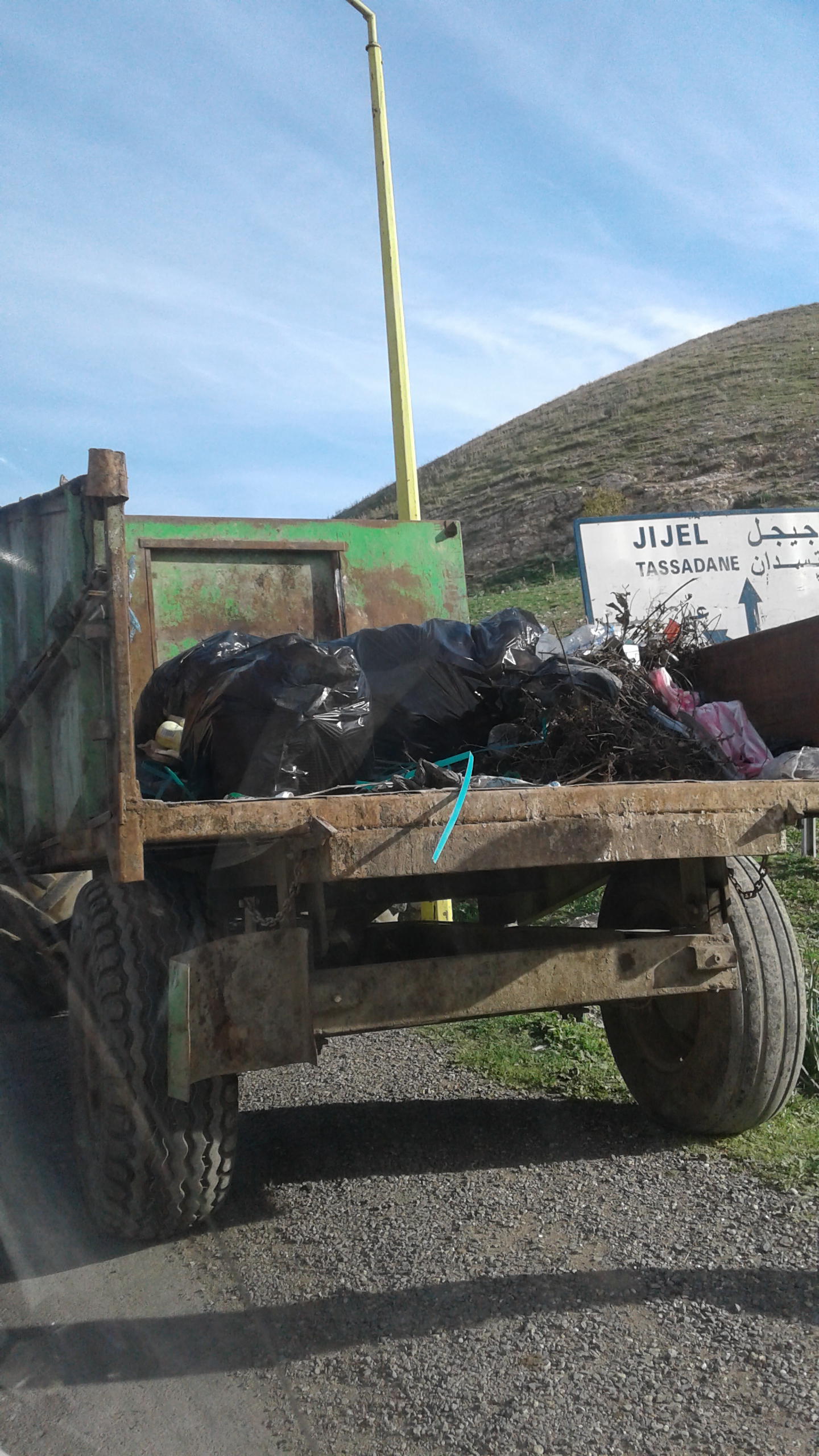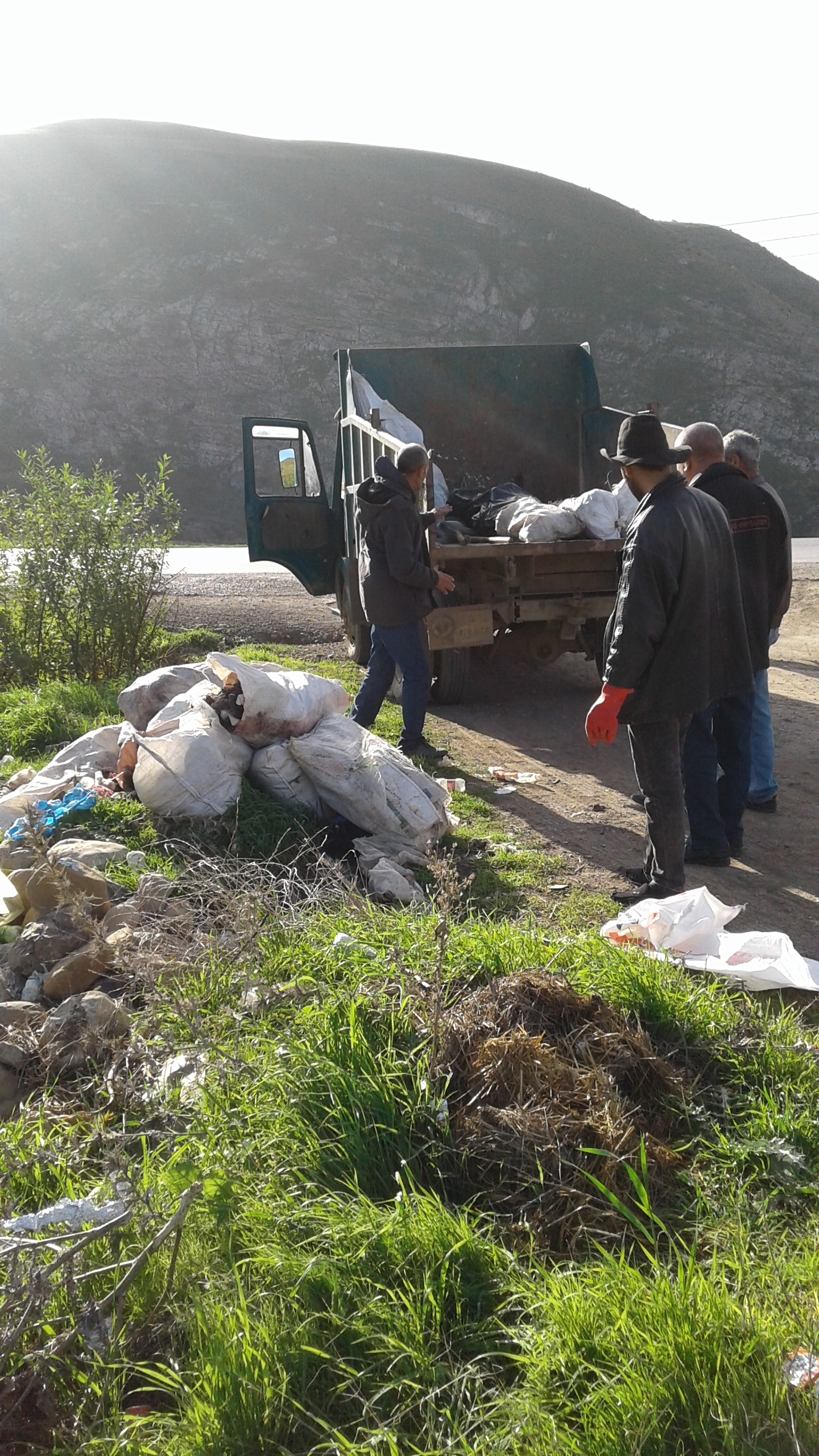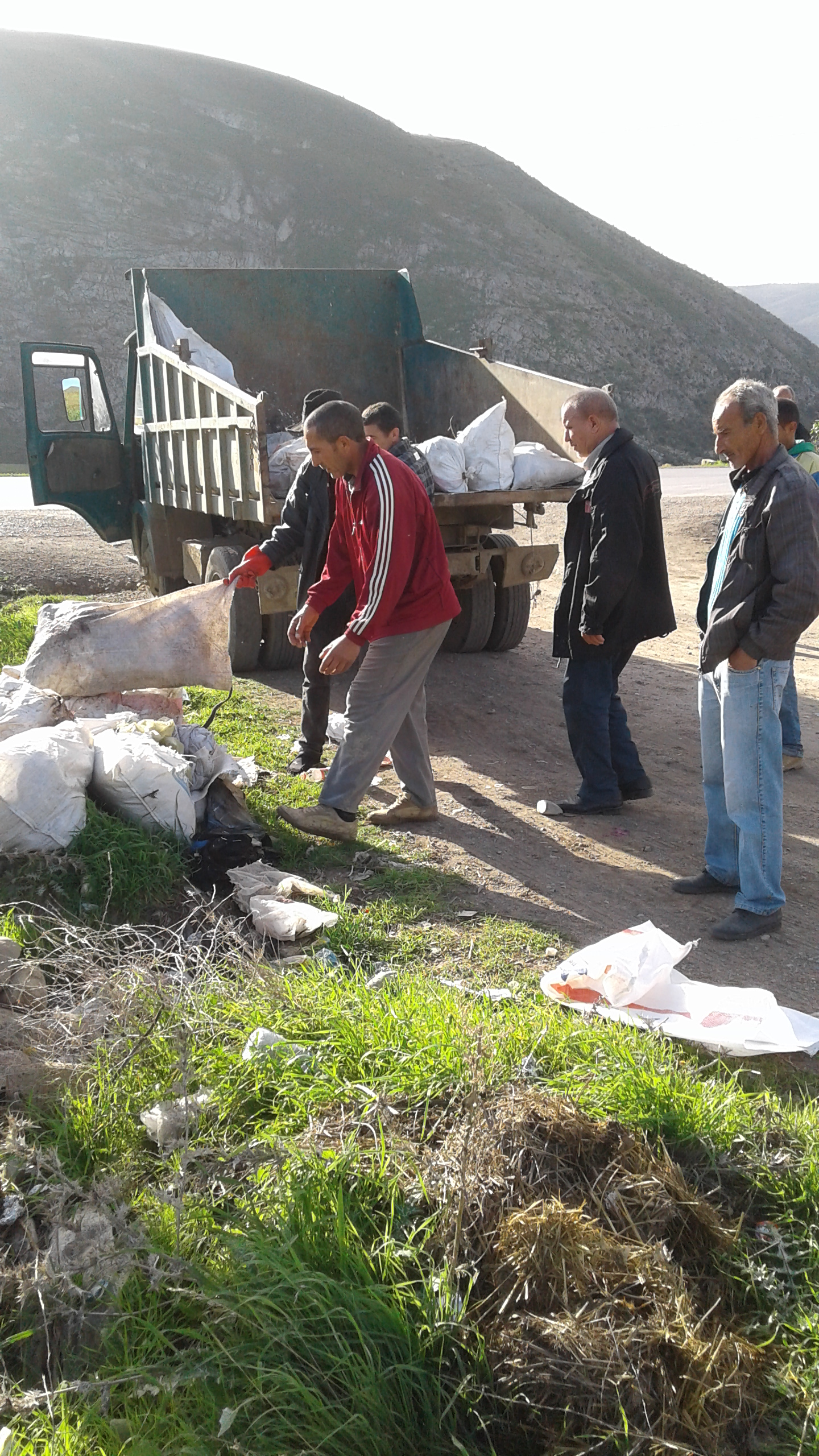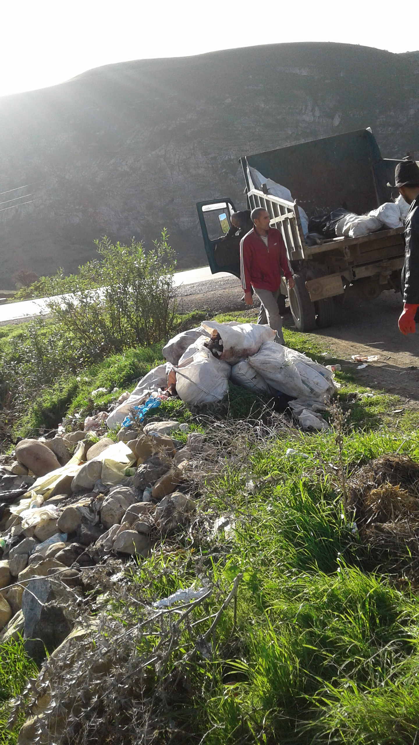 - خارج المخطط العمراني ( + المدارس و المذبح و سرية الدرك ) اسبوعيا بواسطة شاحنة سوناكوم بحوالي 07 طن من النفايات .